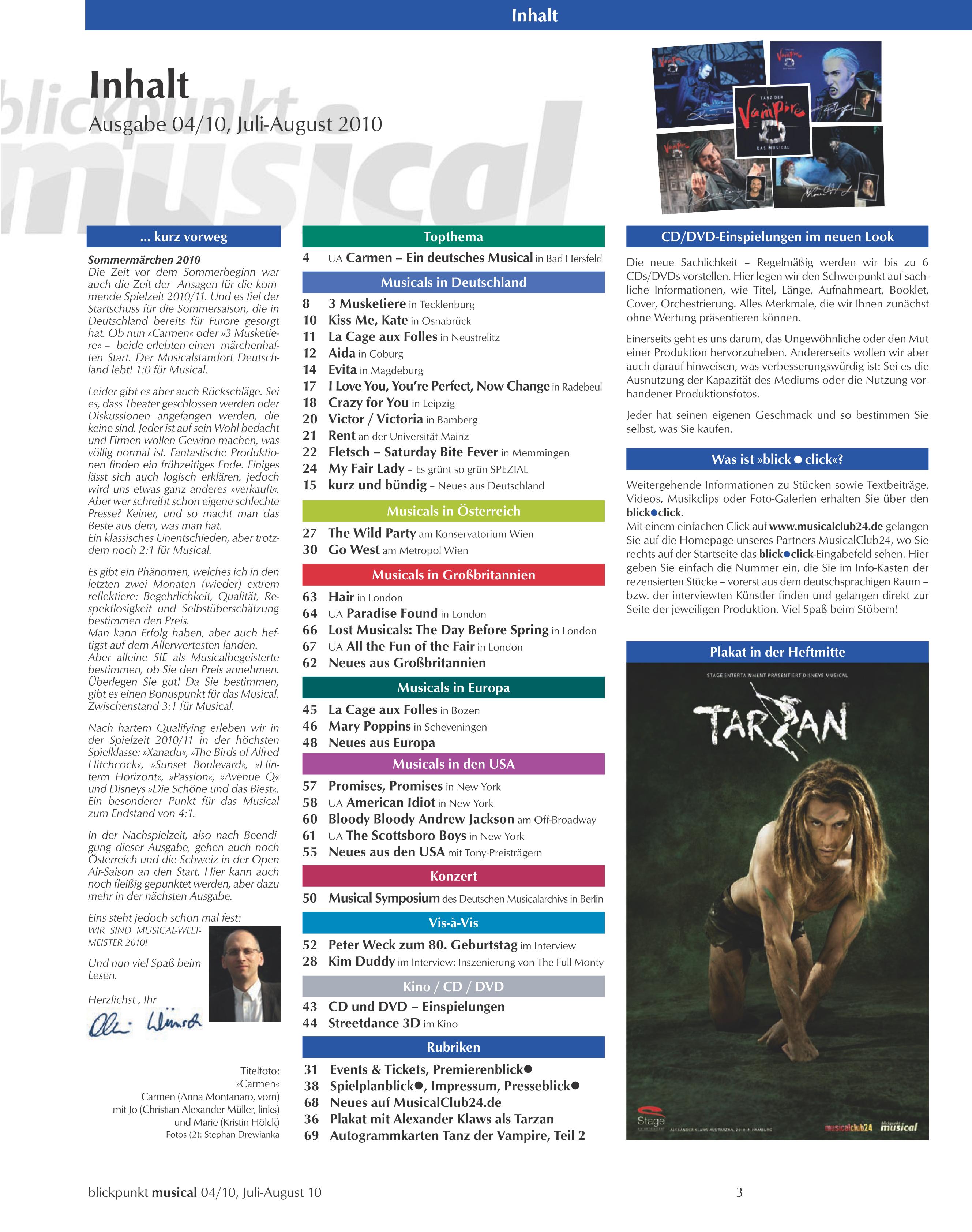 Magazin blickpunkt musical - 04-10 - Ausgabe 47 mit Poster "TARZAN" und S... mehr