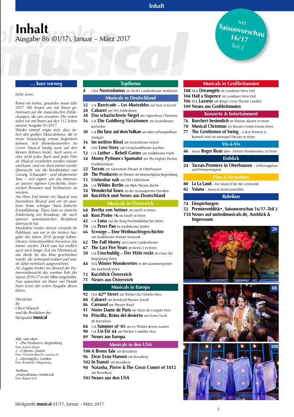 Themen der blickpunkt musical – Ausgabe 86 (01/2017)