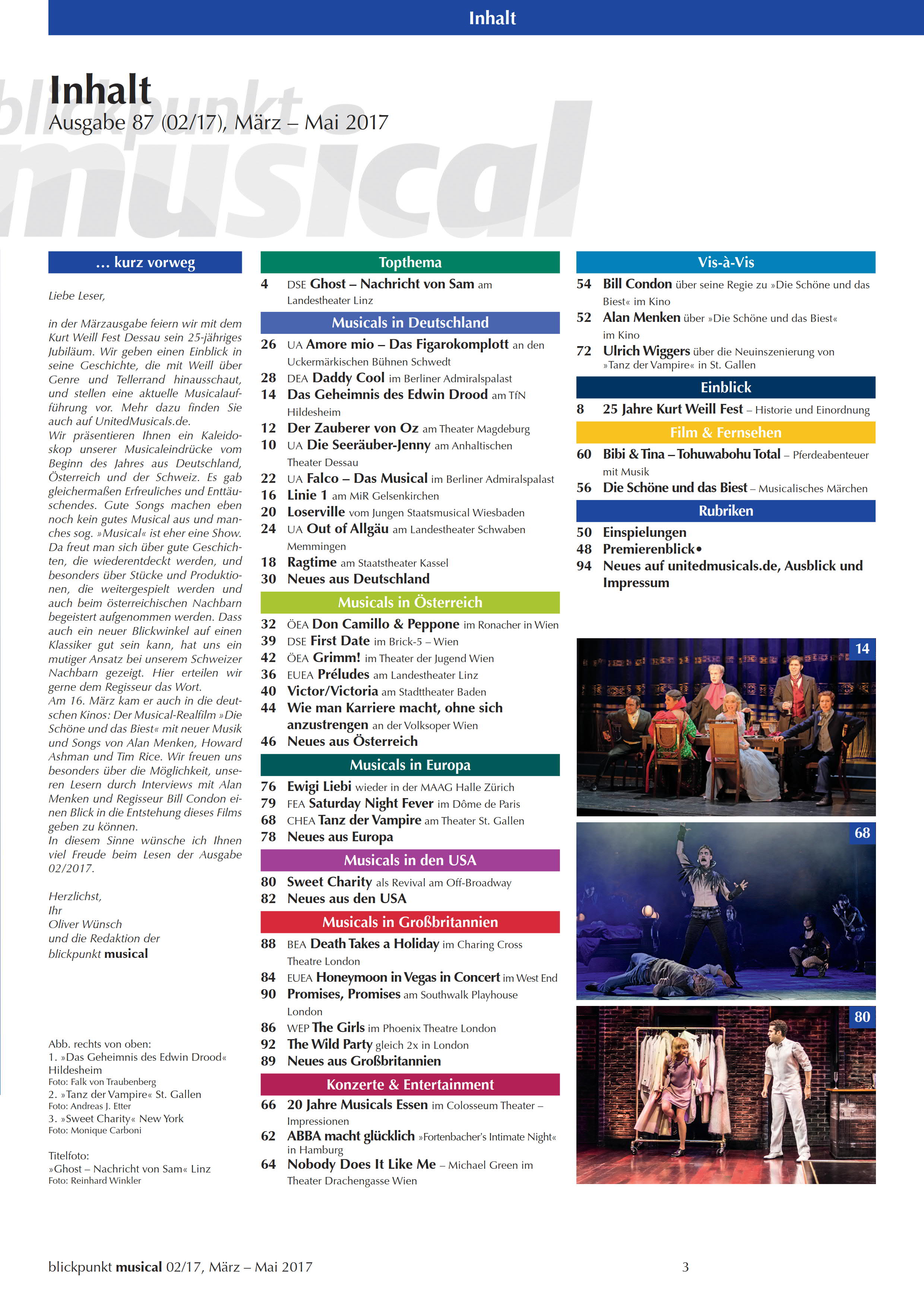 Themen der blickpunkt musical – Ausgabe 87 (02/2017)