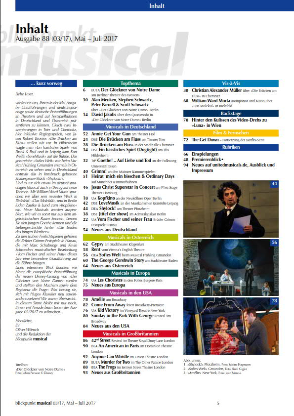 Themen der blickpunkt musical – Ausgabe 88 (03/2017)
