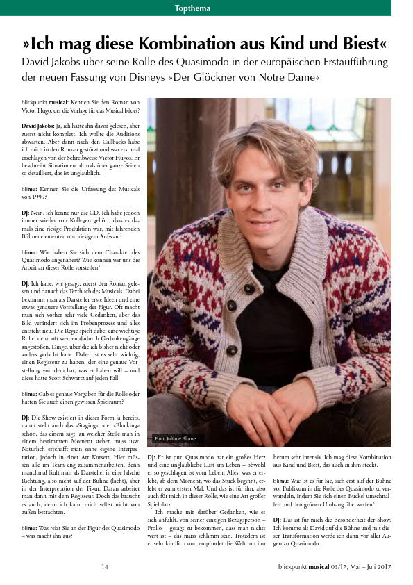 David Jakobs über den Quasimodo in »Der Glöckner von Notre Dame« Berlin