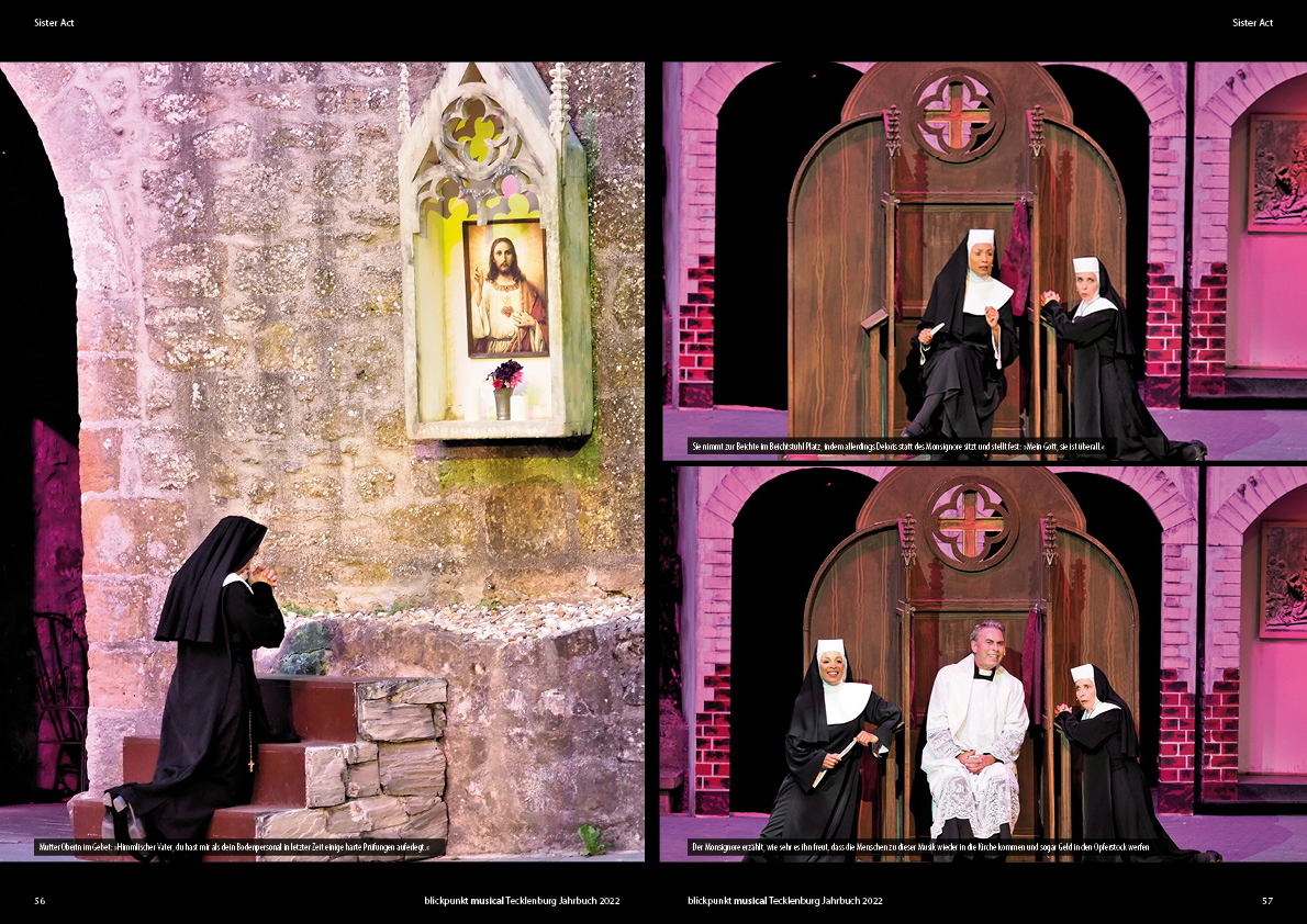 Die beiden Stücke SISTER ACT und DER BESUCH DER ALTEN DAME sind umfangreich dargestellt. DER ZAUBERER VON OZ und die PFINGSTGALA haben auch Ihren Platz erhalten.