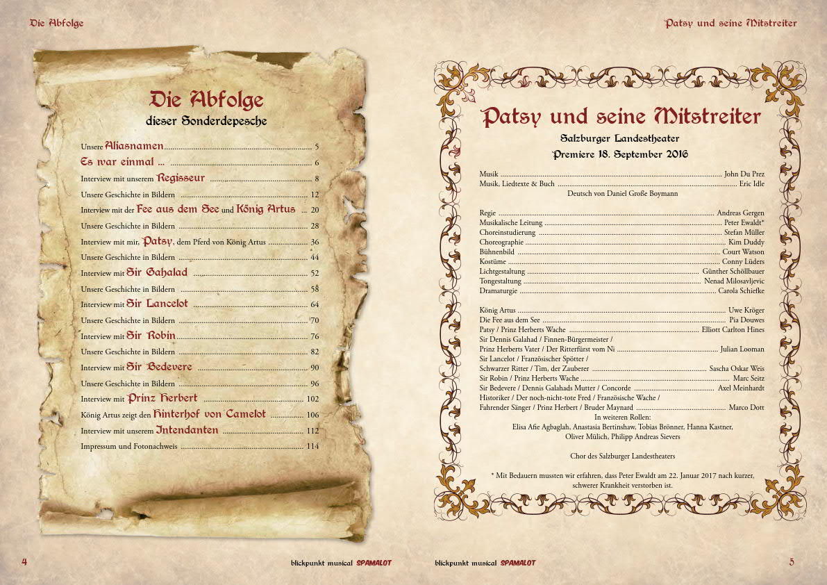 Unsere Blickpunkt Musical Sonderdepesche zu SPAMALOT in Salzburg 116 Seiten mit Umschlag... mehr